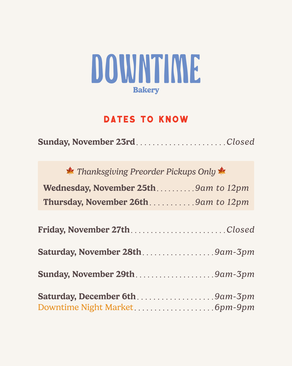 Next up, not sure if you saw this, but we won the Philadelphia Inquirer’s Bake-Off over the weekend. That was a nice surprise. I made 800 long hot and cheddar biscuits with spicy sungold tomato jam. Many people, understandably, have been asking if these biscuits and this jam will be at the bakery and the answer is: YES, this Friday and Saturday. They are slightly different (long hot season is over so we’re using local pepperoncini peppers) and the sungold tomato jam will be on our sesame morning rolls, until we run through it. Biscuits will be regularly on the menu going forward but I’m saying this Friday and Saturday specifically because we are CLOSED this Sunday. And next week is wonky with Thanksgiving hours. So regular biscuit weekends begin, in earnest, in December.