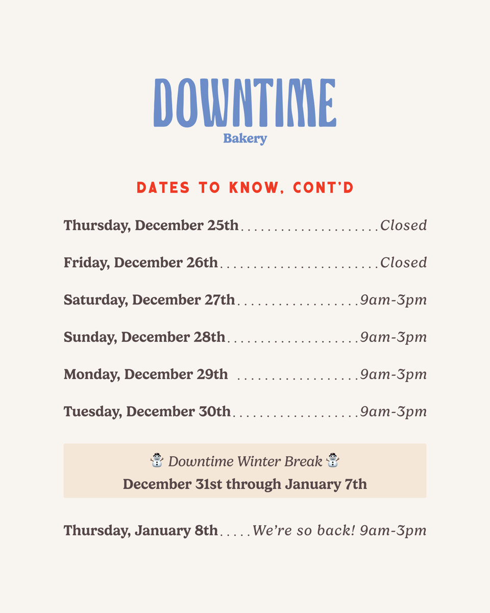 Here’s the next month and a half at the bakery: